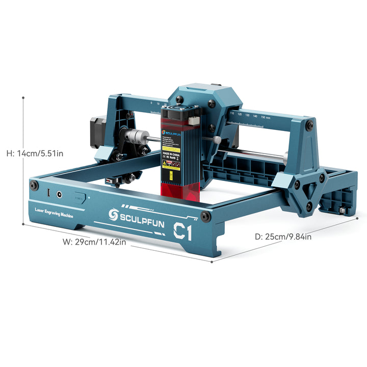 Minimáquina grabadora láser Sculpfun C1: diseño portátil para manualidades. Área de trabajo compacta de 15 x 13 cm, perfecta para principiantes y pequeñas empresas.