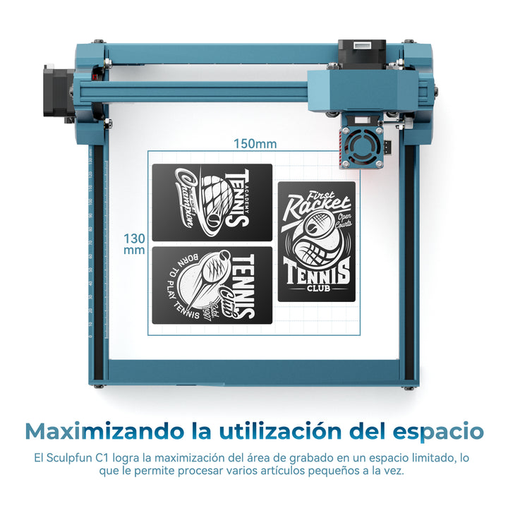 A pesar de su tamaño compacto, la grabadora láser sculpfun C1 ofrece una amplia área de grabado de 150 x 130 mm, optimizando el espacio. Permite procesar varios elementos pequeños simultáneamente. Además, las escalas precisas del marco proporcionan puntos de referencia claros en los ejes X e Y, lo que permite un posicionamiento preciso para proyectos complejos y detallados.