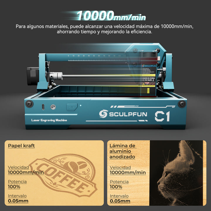 Mini Grabador Láser Sculpfun C1 (3W) - Precisión 0.04mm, Compacto 15x13cm