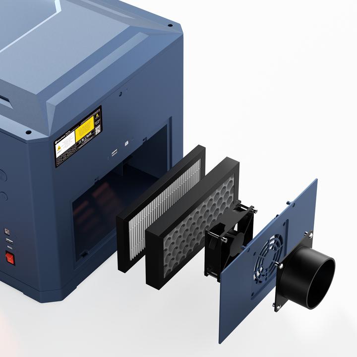 1. Filtración eficiente: El juego incluye filtro de algodón y carbón activado. El filtro de algodón filtra el polvo fino de madera generado durante los procesos de grabado y corte, y el carbón activado absorbe eficazmente los olores fuertes.