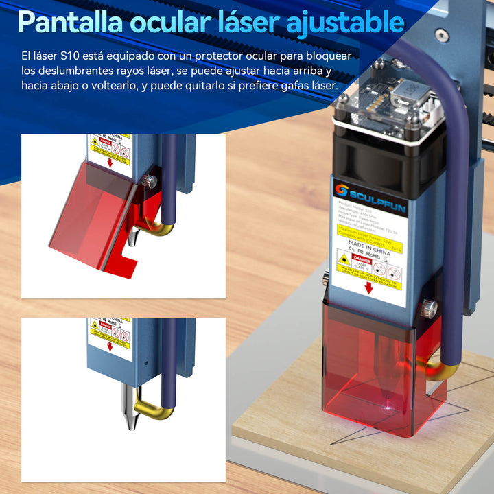 Protector ocular del láser ajustable: El láser S10 está equipado con un protector ocular desmontable que le protegerá incluso sin gafas. Y si no lo necesita, puede desmontar fácilmente el protector ocular.