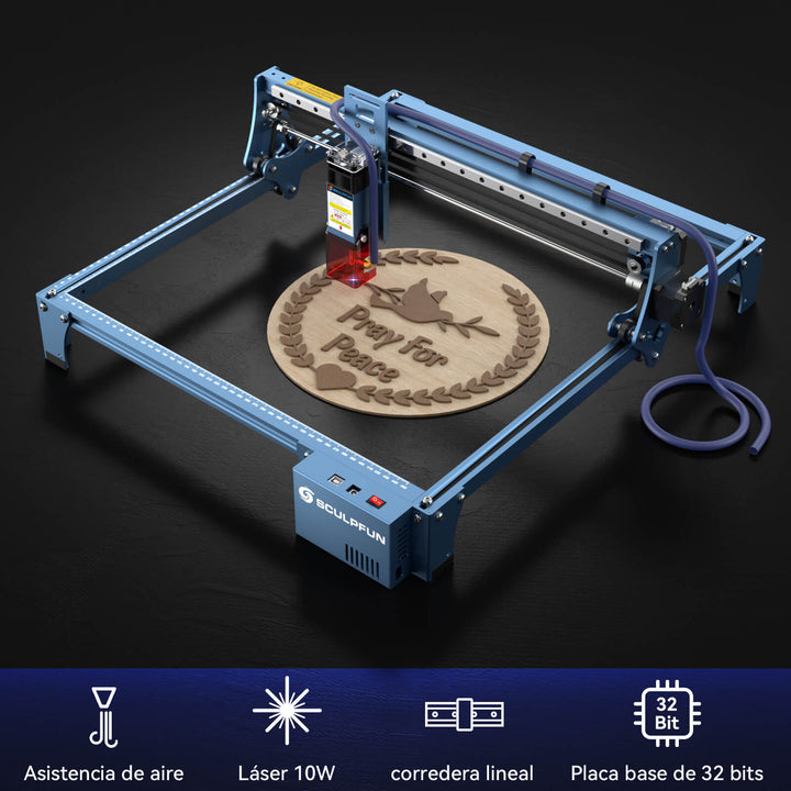 Más rápido, más fuerte, más limpio: Combinando la avanzada asistencia de aire de alta velocidad y el láser de alta densidad de 10W, el S10 muestra un rendimiento comparable al del corte de madera de grado industrial: primero, se mejora considerablemente la eficiencia de corte, corta más rápido; segundo, la penetración de corte es más fuerte, pudiendo cortar muchos tipos de madera de alta densidad; tercero, la superficie de corte es más limpia, el potente flujo de aire elimina los residuos, evitando manchas en la superficie del objeto cortado.