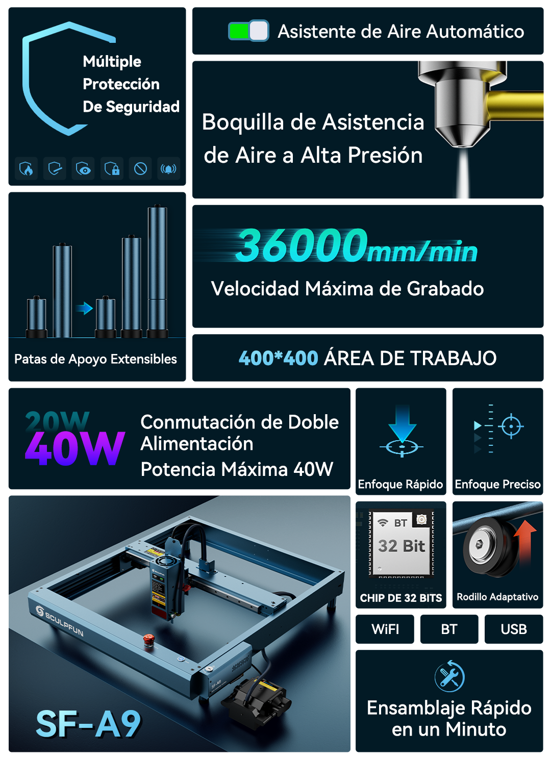 | Producto | SCULPFUN SF-A9 | SCULPFUN S30 Ultra | SCULPFUN S30 Pro Max |