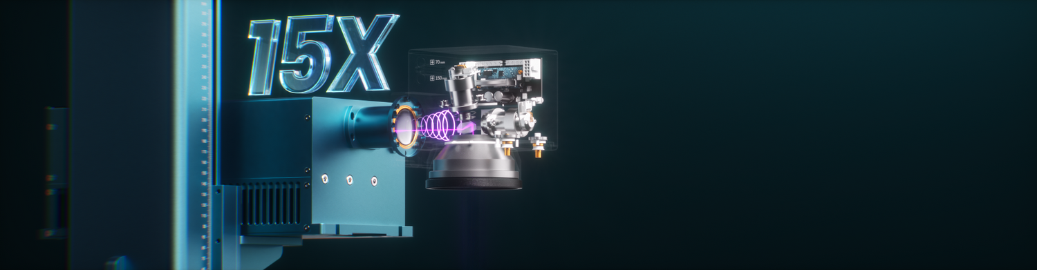 Con una precisión de punto de 0,0019 mm (50 veces más pequeño que el diodo, 100 veces más pequeño que el CO₂), resolución de hasta 16K para grabado ultra HD en casi cualquier material.